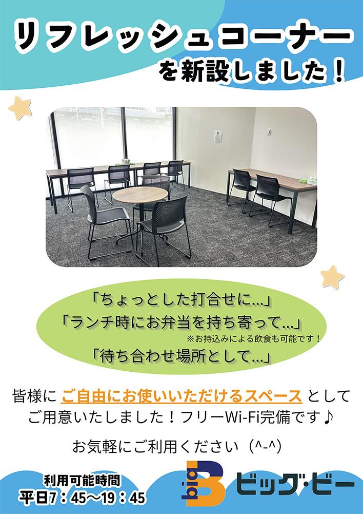 リフレッシュコーナーを新設しました!