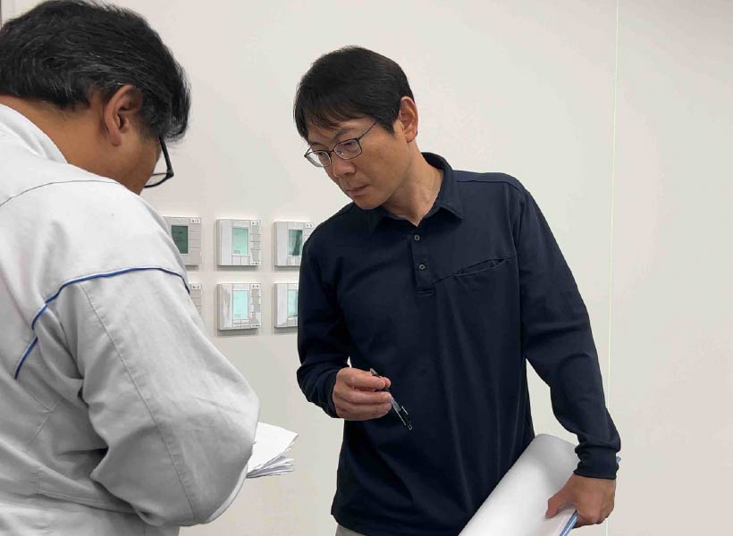 - 私たちの職場は、先輩の丁寧な指導のもとで成長できる環境が整っており、分からないことも安心して学べます。日頃からコミュニケーションがとりやすく、仕事の相談はもちろん、プライベートな話もできるほど雰囲気の良い職場です。さらに、大型オフィスビルなどのプロジェクトに携わる機会もあり、大きなやりがいを感じられるのも魅力のひとつ。チームで協力しながら、自分自身の成長を実感できる環境です。